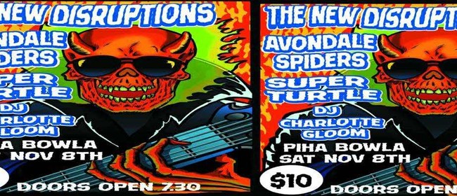 Summary: Sun, surf and rock n roll! The New Disruptions, Avondale Spiders, Superturtle & DJ Charlotte Gloom rock the Piha Bowling Club on Saturday Nov 8 after the SLS Northern Region Senior Auckland All In Surf Comp. Doors ...see more